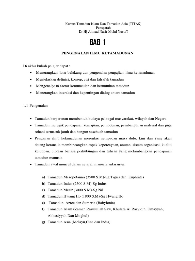 Tamadun Islam Dan Tamadun Asia Titas Bab 1 Pengenalan Pdf